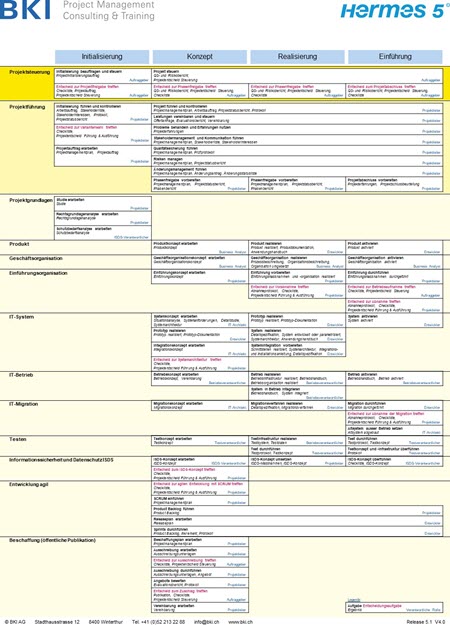 Das ideale Hilfsmittel für die Prüfungsvorbereitung zur HERMES Zertifizierung. Alle Phasen, Module, Aufgaben, Ergebnisse und Rollen zusammengefasst.